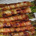 Preheat oven to 400 Divide asparagus into bundles of 3-4 spears Wrap each in a slice of bacon In a saucepan, melt a stick of butter, 1/2 c. brown sugar, 1Tbsp soy sauce, 1/2tsp garlic salt, and 1/4 tsp black pepper and bring to a boil. Pour mix over bundles and bake until bacon looks done.